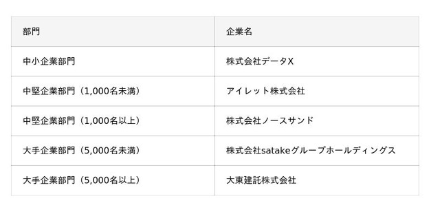 各部門において、最もエンゲージメントが高い企業として表彰された「Best Motivation Company」は、以下の5社です。