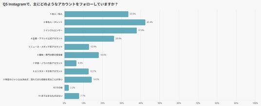 Instagramを利用している日本人427人の回答を見ると、フォロー対象として「個人の発信者」が強い影響力を持っていることが分かりました。