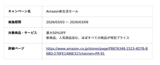 ■Amazon新生活セール 開催概要