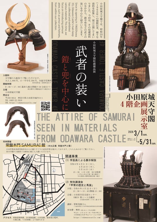 今回、その収蔵資料の中から、鎧(よろい)や兜(かぶと)など、武士の装いを中心に紹介する小田原城天守閣収蔵優品展「武者の装い」を開催します。