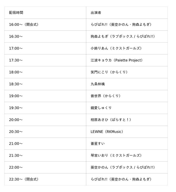 主催の『らびぱれ!!』の呼びかけにより、VTuberシーンの最前線で活躍する以下のプロダクション・グループから実力派メンバーが参戦いたします。