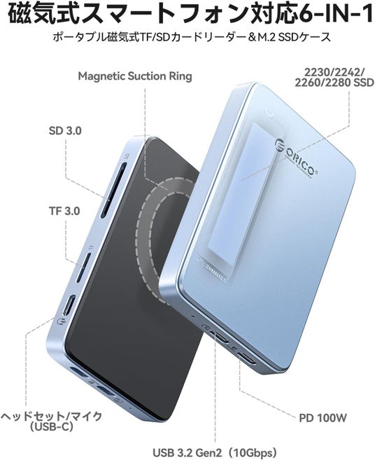 ORICO 5 in 1 磁気吸着式カードリーダー & M.2 ハードディスクケース