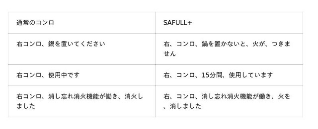 ガステーブルコンロ「SAFULL+」は、高齢者が安心してガス火調理を続けられるよう、ビルトインガスコンロ「SAFULL+」と同様に、聞き取りやすい音声ガイドや、安心して鍋が置ける大型ごとく、誤操作を防ぐ色使いなどを採用します。