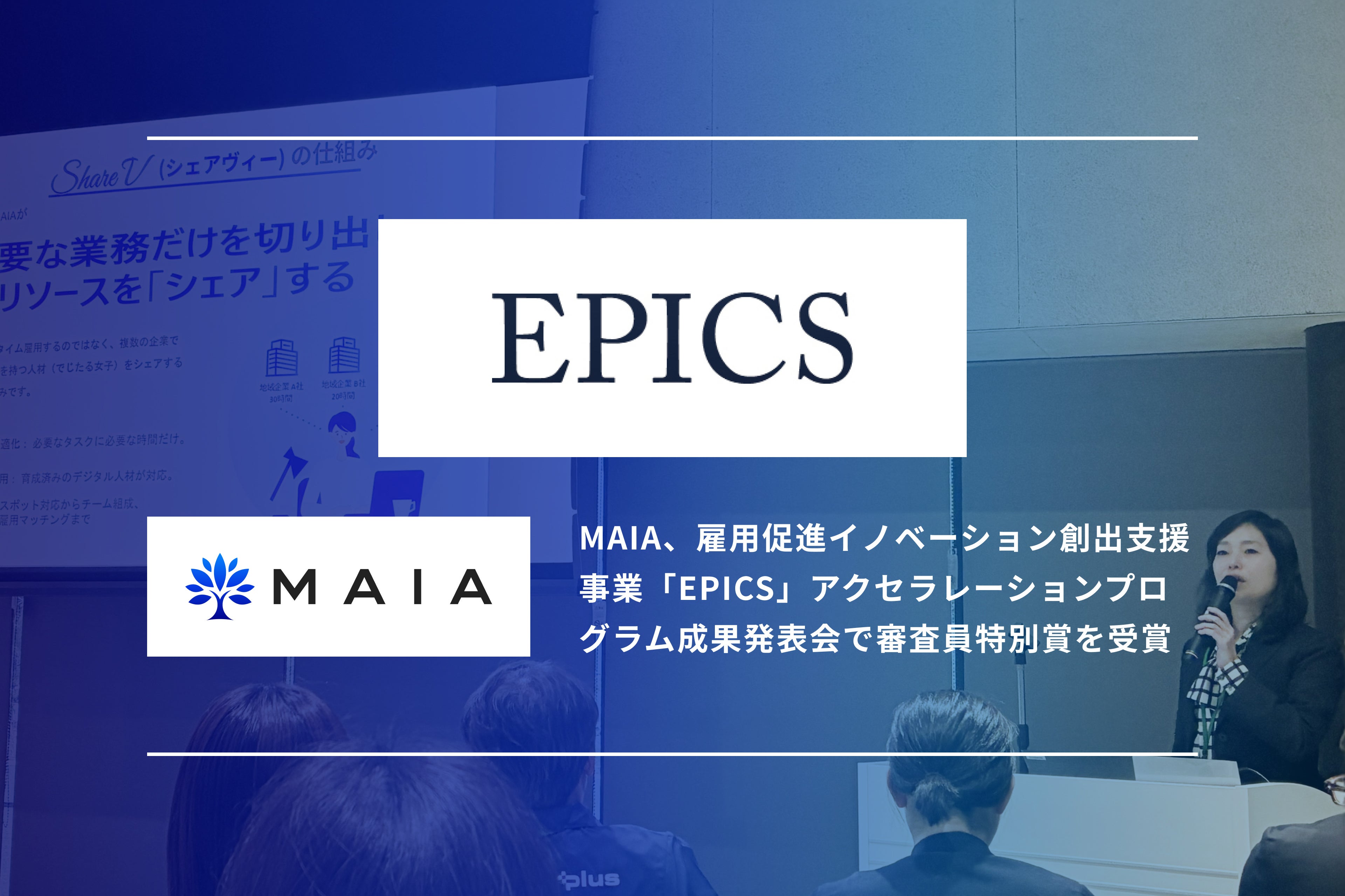 女性が自分らしく働く環境を作るため、女性デジタル人材の育成と全国の企業・自治体のデジタル化支援を行う株式会社MAIA(本社:東京都港区、代表取締役:月田 有香、以下 MAIA)は、大阪府が主催する雇用促進イノベーション創出支援事業(EPICS)のアクセラレーションプログラム成果発表会において、「地域企業向けDX人材ワークシェアリングモデル」の取り組みが高く評価され、審査員特別賞を受賞しました。