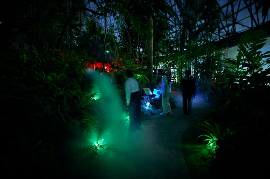 夜の夢の島熱帯植物館を舞台に、3日間限定で体験型インスタレーション 「Aerosculpture ver.2『匂う森』」 が開催されました。本展覧会は、夜のバイオームを舞台に、「共生」をテーマとした体験型インスタレーション作品です。