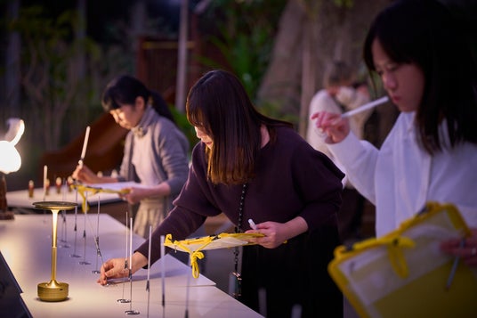 ドーム内には、熱帯の代表的な夜の送粉者(ポリネーター)である蛾(ガ)やコウモリの嗅覚的な関係性に着想を得た仕掛けを各所に設置。匂い・風・音・光が重なり合う空間の中で、来場者は自然の営みと人工の仕掛けが重なる感覚を身体で体感し、嗅覚を頼りに森を歩く体験を楽しみました。また、関連ワークショップ 「メッセージとしての香り - 交信フレグランス」 では、参加者が展示空間の「空気」に関与できるツールとして香りを制作。この体験を通じて、参加者は感覚と空間が交差する新しい嗅覚体験を味わいました。