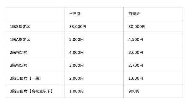 ※「1階S指定席」はチケットぴあのみでの販売となります。