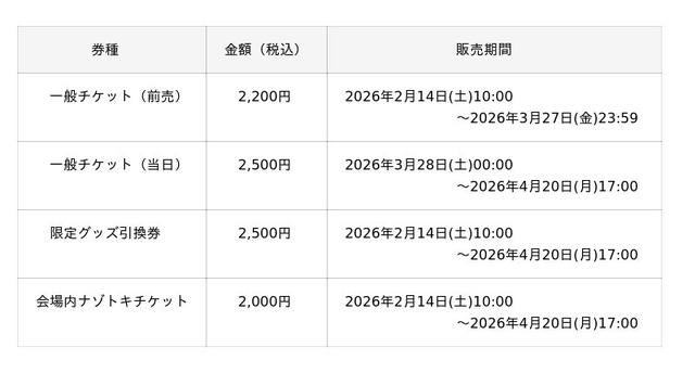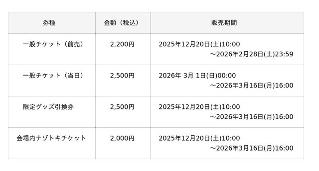 ※「限定グッズ引換券」のみでの入場はできません。別途、一般チケット(前売・当日)をご購入ください。