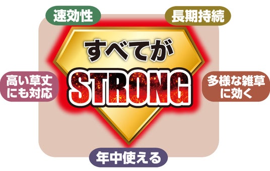 さらに強力に、さらに長く、そしてさらに速く進化し(当社従来品比)、とにかくよく効く除草剤が欲しい方やタフな雑草に悩んでいる方、体力的に作業がつらく散布回数を減らしたい方におすすめです。