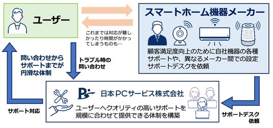 デジタルインフラの設定・修理・トラブル解決を行う日本PCサービス株式会社(本社:大阪府吹田市、代表取締役社長:家喜 信行、証券コード:6025、以下「当社」)は、2026年3月2日(月)よりスマートホーム機器メーカー、ハウスメーカーを対象にアフターサポート体制を簡単に構築できるサポートデスクサービスの提供を開始します。