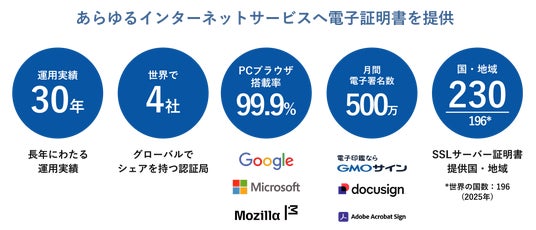 GMOグローバルサイン・HDは、インターネットやデジタル取引における「安全」と「信頼」を提供するITセキュリティ企業です。日本発の最上位認証局「GlobalSign」を運営し、世界11か国の拠点から各国の政府機関や企業に電子認証や電子署名の技術を提供しています。さらに、これらの技術を活用した国内シェアNo.1電子契約サービス(※4)「電子印鑑GMOサイン」を企業や自治体に提供し、安全な社会インフラを支えています。