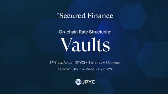 - 第1弾 Strategy「Secured Finance JPYC Lender」を同時公開:Ethereum上のJPYCをJPYC Vaultに預けると、Secured Financeレンディングプロトコルを通じて自動的に貸し出しを行い金利収益を獲得(オーダーブック操作不要)