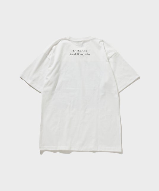 プリントには、1990年代前半にキャンペーンフォトとしてファッションモデルの「Kate Moss(ケイト・モス)」を撮り下ろした作品を採用。Kate Mossの魅力を改めて感じる儚げで美しい魅力的なモノクロの一枚です。Tシャツのカラーはホワイトとブラックの2色展開。バックには「Kate Moss」と「Patrick Demarchelier」の名をプリントし、フロントの写真に合わせたエレガントさを添えています。