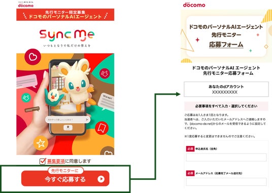 ドコモでは2026年3月2日(月)から「SyncMe」パイロット版のモニターを募集します。モニターの皆さまには、「SyncMe」を実際の生活シーンでご利用いただき、「サービスを共に磨き上げるパートナー」としてご参加、ご意見をいただく予定です。「SyncMe」モニター募集の詳細については、別紙2をご確認ください。