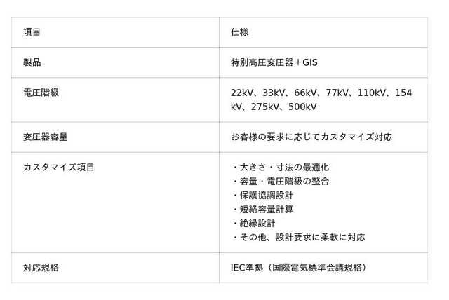 特別高圧システムにおいて、変圧器とGISは密接に連携して動作する必須機器です。しかしそれらを別々のメーカーから調達する場合、大きさ・寸法・電圧・容量などの整合設計調整が必要となり、多大な時間を要します。