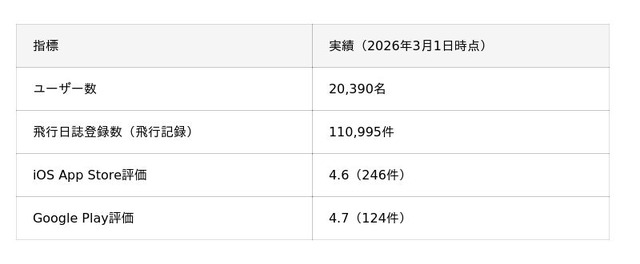 「ドローンノート」は、モバイルアプリとしてこれまでに20,390名のユーザーにご利用いただき、110,995件の飛行日誌が登録されています。App StoreではiOS 246件(評価4.6)、Google PlayではAndroid 124件(評価4.7)と、現場のパイロットの皆様から高い評価をいただいてまいりました。こうした実績を基盤に、法人のお客様からの「組織全体で飛行記録を管理したい」というご要望にお応えするため、このたびWeb管理ポータル機能を追加いたしました。