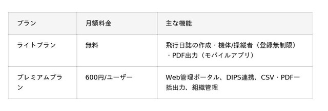 Web管理ポータルの機能は、法人・団体だけでなく個人のプレミアムプランユーザーにもご利用いただけます。組織共有機能を除き、DIPS連携やCSV・PDF出力、フライト案件ダッシュボードなど、主要機能を個人アカウントでもお使いいただけます。現場と管理をつなぐ、モバイルアプリとのシームレスな連携