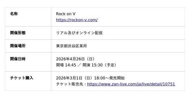 ▶ Rock on V公式サイト:https://rockon-v.com/