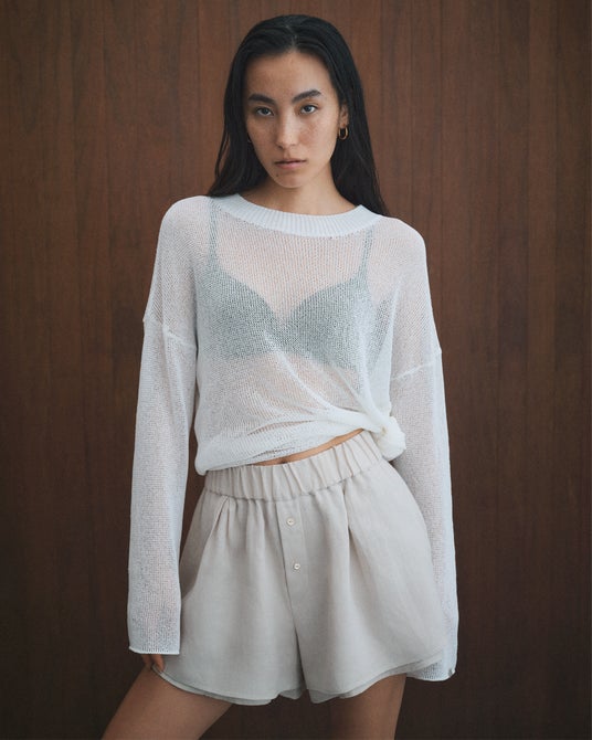 Sheer tie Knit ¥28,600 Linen relaxed short Pants ¥36,300