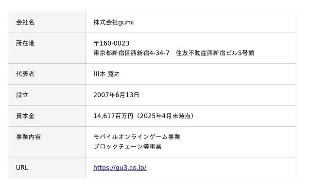 会社概要:株式会社gumi