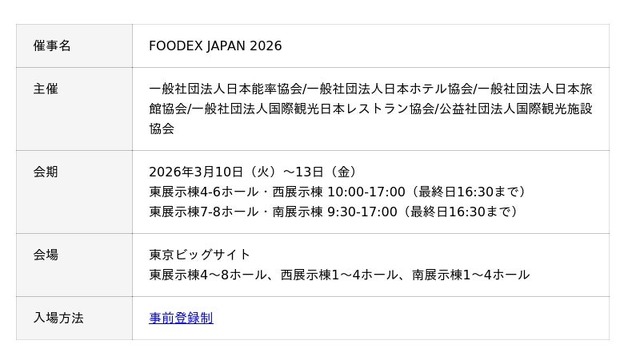 株式会社アイエンター(本社:東京都渋谷区、代表取締役:入江恭広、以下「アイエンター」)は、2026年3月10日(火)~13日(金)に東京ビッグサイトで開催される「FOODEX JAPAN 2026」に出展します。