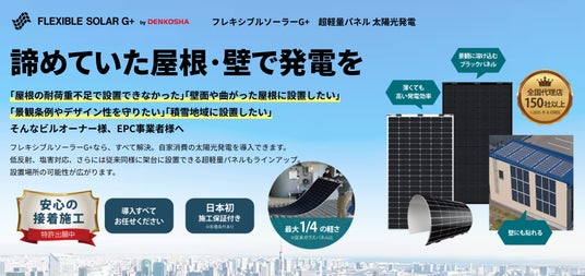 本ブースでは、このような社会課題の解決策として超軽量に特化し、諦めていた屋根や壁に設置可能な「超軽量フレキシブルモジュール」や通常のガラスモジュールの約1/2の重さの「超軽量ガラスモジュール」など、幅広いラインナップで商品を展示致します。