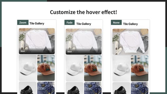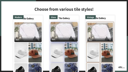 レイアウトや画像比率、余白、ホバーエフェクト、オーバーレイなどを細かく調整でき、ビジュアル重視のストアでも世界観を崩さず、洗練された見せ方を実現できます。