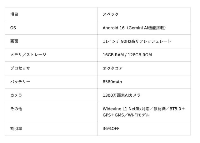 Gemini AI搭載 Android16タブレットhttps://item.rakuten.co.jp/doogee-store/u11/