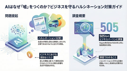 Ragate株式会社(以下、ラーゲイト)は、2025年12月に情報システム部門・DX推進室所属のビジネスパーソン505名を対象とした「生成AI活用における出力精度・ハルシネーション実態調査」を実施し、その結果をレポートとして公開しました。