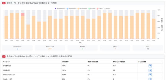 AI Overviews上で、自社サイトがどの程度引用されているかを可視化します。