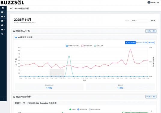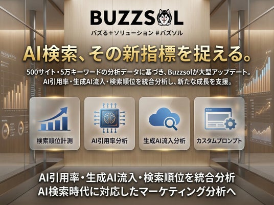 株式会社バックステージ(本社:東京都千代田区、ステージグループ)は、AIマーケティング支援サービス「Buzzsol(バズソル)」において、AI検索時代の集客構造に対応するため、Google検索順位計測、AI Overviewsでの引用率分析、生成AIからのWebサイト流入分析、カスタムプロンプト機能を提供開始しました。