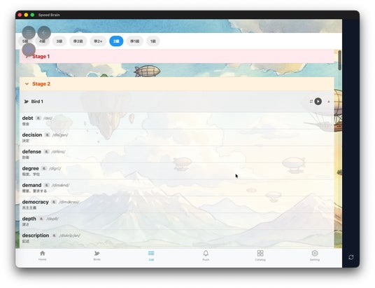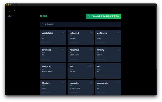 ユーザーの弱点を特定し、忘却曲線理論に基づいて効率を極めた単語習得機能。反復学習の無駄を徹底的に省き、最小限の努力で語彙を確実に定着させる。