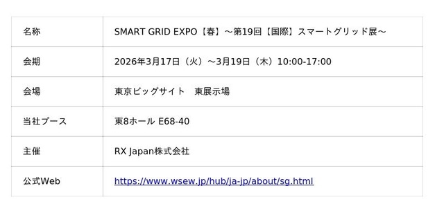 SMART GRID EXPO【春】~第19回[国際]スマートグリッド展~ に出展いたします。2026年3月17日(火)~3月19日(木)に東京ビッグサイト|株式会社Blossom Energy