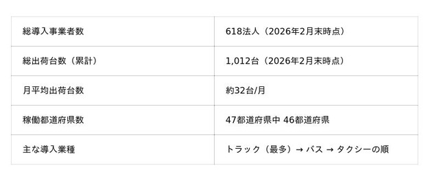 なお、2025年7月15日時点の前回発表(344法人・517台)から約8か月で約280法人・495台増加しており、導入ペースは大幅に加速しています。