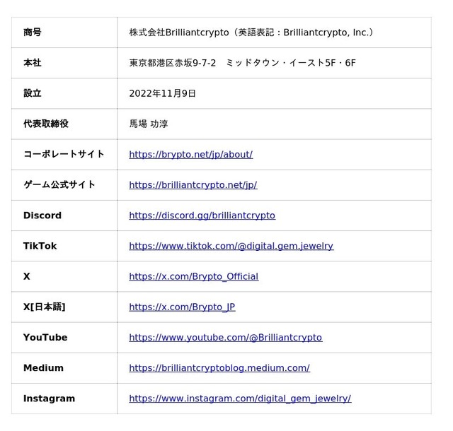 【株式会社Brilliantcrypto 会社概要】