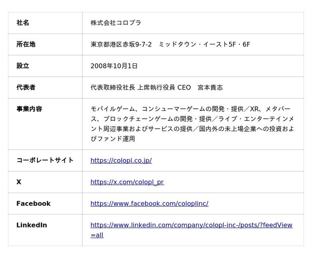 【株式会社コロプラ 会社概要】