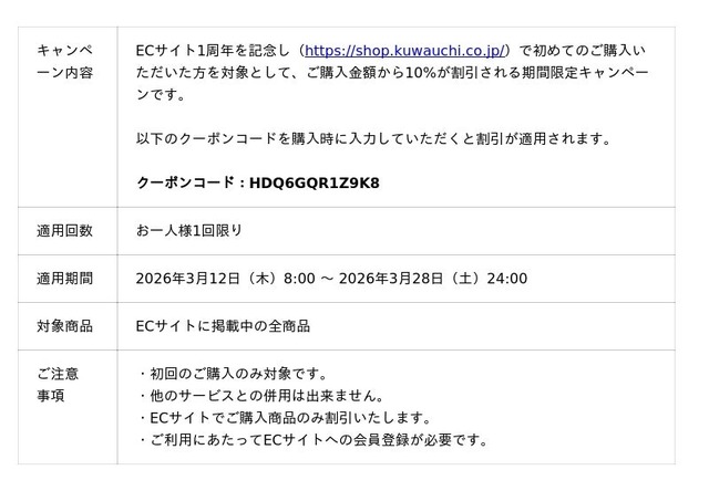 ウェブサイト:https://kuwauchi.co.jp/