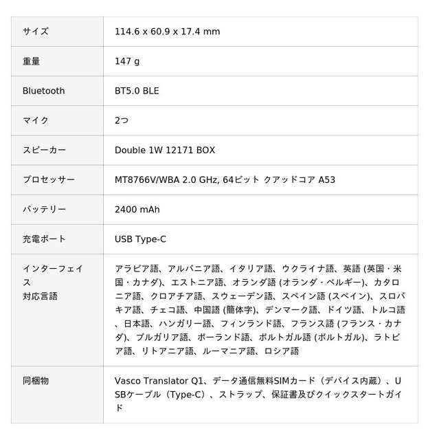 製 品 名: Vasco Translator Q1(ヴァスコ・トランスレーター・キューワン)
