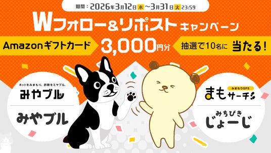 本キャンペーンでは、みやブル公式Xアカウント(@Miyabull_BBSS)とまもサーチX公式アカウント(@mamosearch)をフォロー&投稿をリポストすると、抽選で10名様にAmazonギフトカード3,000円分をプレゼントいたします。