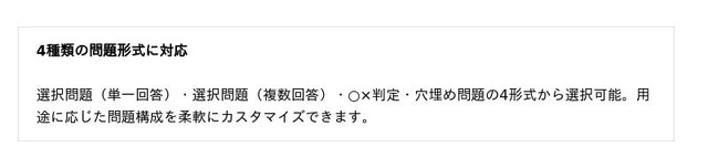 対応問題形式:選択式(単一・複数)、○×判定、穴埋め