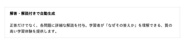 ・ 自学自習の効率化 -- AIが弱点克服のための最適な問題をパーソナライズ生成