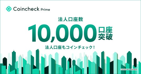 東証プライム市場上場マネックスグループ株式会社および米NASDAQ上場Coincheck Group N.V.のグループ企業で、暗号資産取引サービス「Coincheck」を運営するコインチェック株式会社(本社:東京都渋谷区、代表取締役:蓮尾 聡、以下、当社)は、Coincheckで開設された法人口座数が1万件を突破したことをお知らせいたします(※1)。
