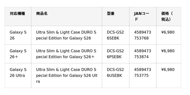 ディーフ株式会社(本社:東京都港区、代表:荒木 徹)は、Samsung Galaxy S26シリーズ向けのスマートフォン保護アクセサリー3製品を発売いたします。フラッグシップモデルにふさわしい素材と設計で、大切な端末を長く美しく使い続けるためのラインアップです。