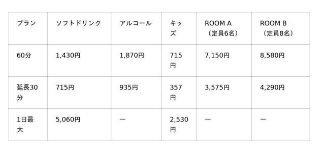ご利用料金の詳細は店舗ページをご参照ください。