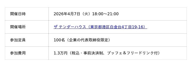 経営者限定M&Aセミナー&交流会イベントを4月7日(火)に開催いたします。