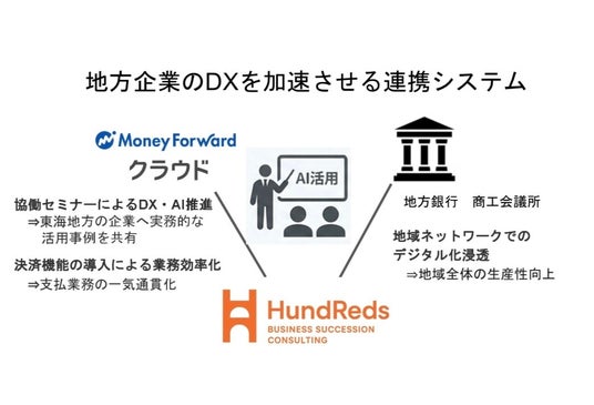 株式会社HundReds(以下「HundReds」)と株式会社マネーフォワード(以下「マネーフォワード」)は、地方企業におけるDX(デジタルトランスフォーメーション)およびAI活用の推進を目的に、紹介パートナーとして、パートナープログラムに参加いたします。