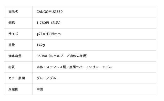 缶飲料をそのまま保冷できる『CANGOMUG 350』を2026年2月に発売しました。