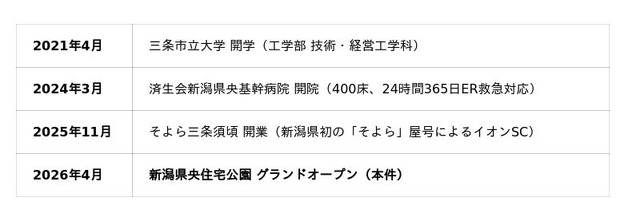 「学ぶ・働く・治す・買う」の都市機能が先行して整備された今、最後のピースとして「住む」を支える拠点が加わることで、燕三条駅前エリアは名実ともに県央の新都心としての機能を完備します。