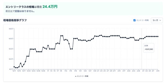 2月『gg』上で最も注目された本構成は、1ヶ月間相場価格221,715円で完全に横ばいとなりました。エントリー帯のコスパの良い構成として、価格が非常に安定しています。