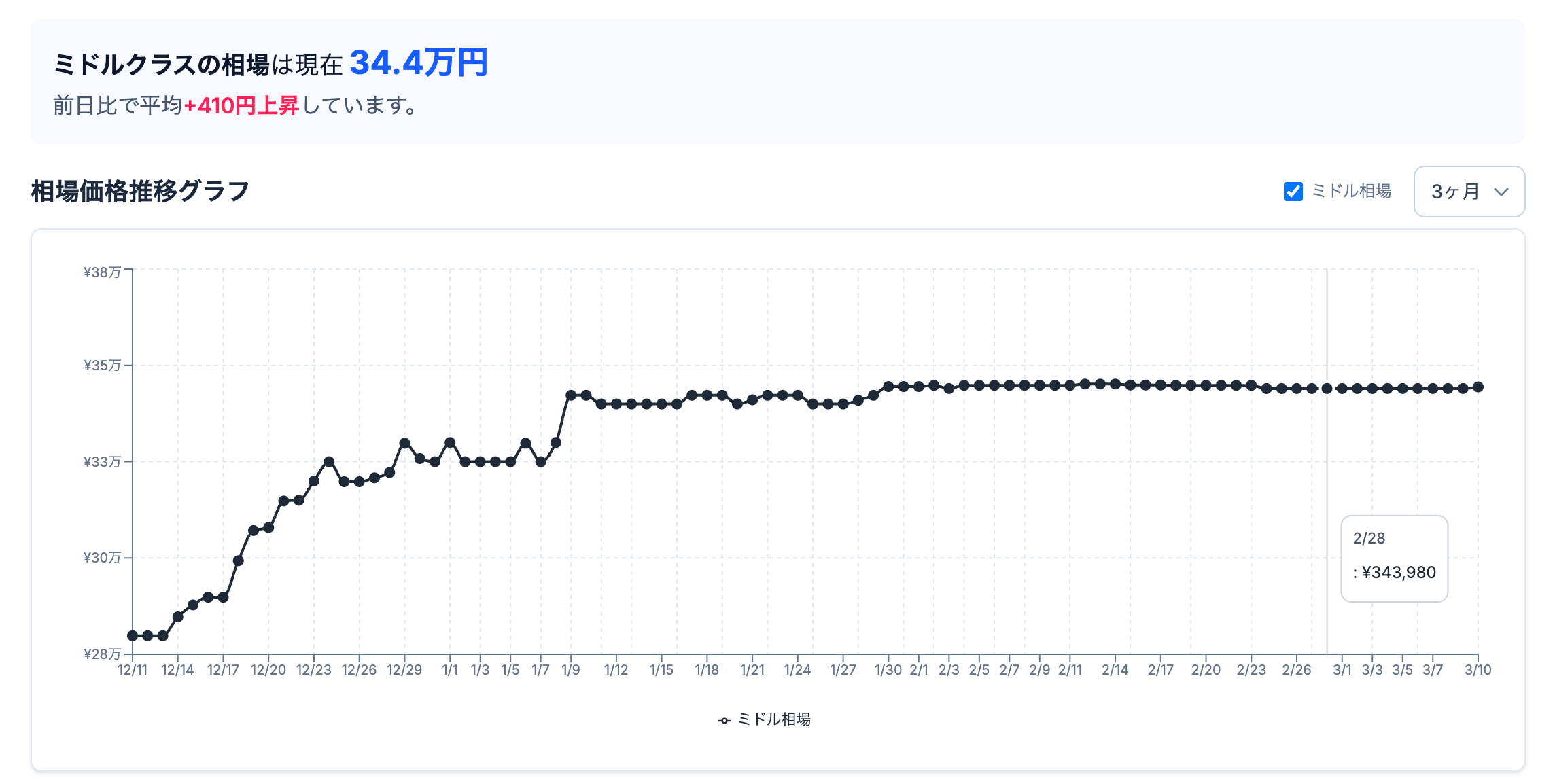 月初と月末で変動率を比較すると+9%の値上がりとなっており、ミドル帯の構成にも関わらず価格の上昇が続くのは、需要の高さからくるものだと考えられます。